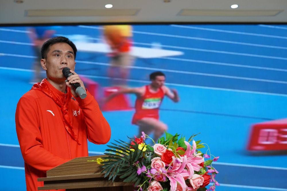 龙清泉为学生们分享了自己的成长经历、训练过程和追梦道路,勉励同学们要努力奋斗、团结协作。“同学们要行动起来,参与到体育运动之中,强健我们的体魄,锤炼我们的意志,塑造我们的品格,弘扬我们的体育精神。”龙清泉说。