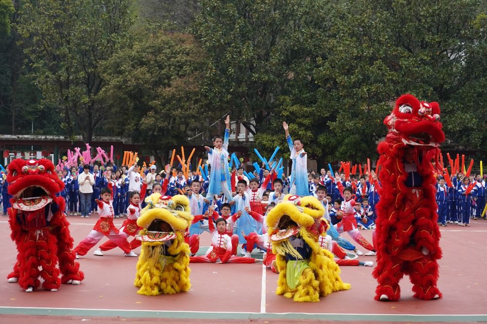湖南师大附小的学生在活动中上演舞龙舞狮节目