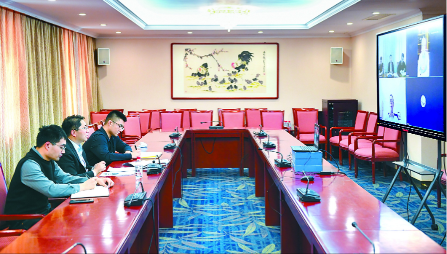 国务院办公厅每年组织旁听全国两会工作,全国两会代表委员的意见建议得到部委快速回应。图为3月8日,科技部成果转化与区域创新司二级巡视员陈宏生(左二)和他的两位同事在科技部与全国政协委员汪鹏飞、隆克平视频连线,就委员提出的加强科技成果转化平台建设等建议进行沟通。 新华社记者 戴天放 摄