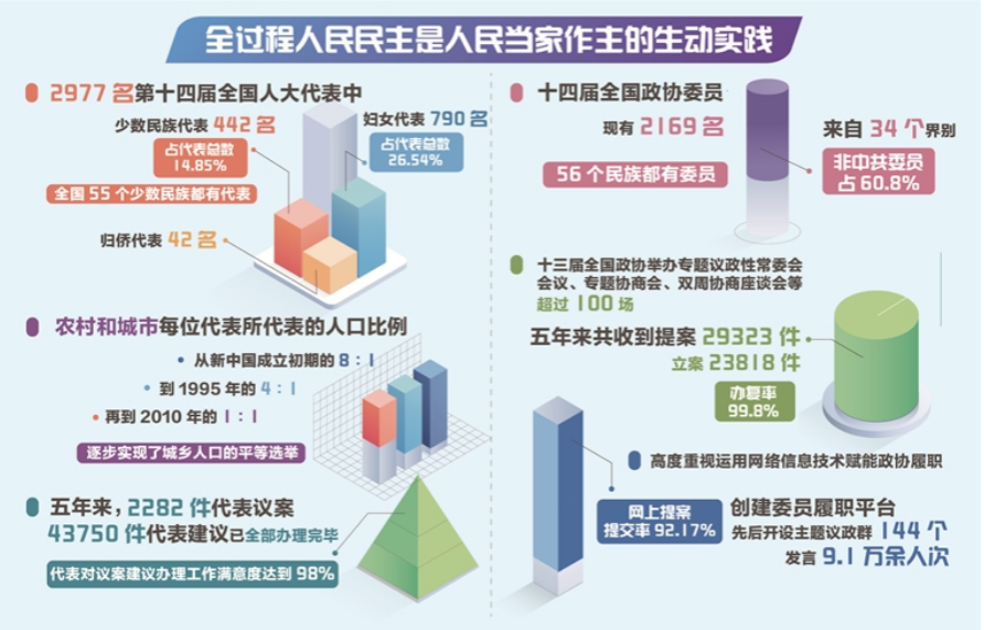全国两会是中国式民主的重要途径,全过程人民民主是人民当家作主的生动实践