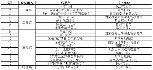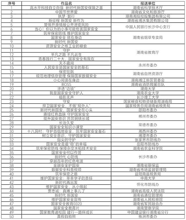(2023年湖南省国家安全短视频大赛优胜奖作品名单)