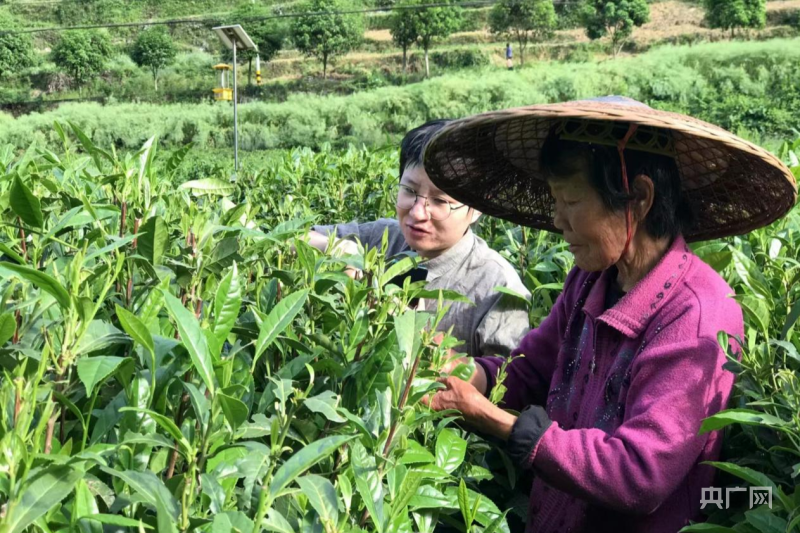 调研中,博士团成员戴上头巾,背上竹篓,踏上茶山,穿梭于茶园的田垄间,跟着采茶工学习采茶技巧,并在茶企参观现代化的制茶生产线,近距离地感受茶叶加工从粗放型手工制作向自动化、标准化生产的转型升级。