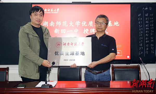 湖南日报·新湖南客户端5月8日讯(通讯员 徐声军 叶春霞)日前,新田一中举行华体会平台“优质生源基地”授牌仪式。华体会平台法学院副教授、研究生导师于熠一行出席活动。活动由新田一中党委委员、副校长黄中福主持,党委委员、副校长柏晟参加活动。
