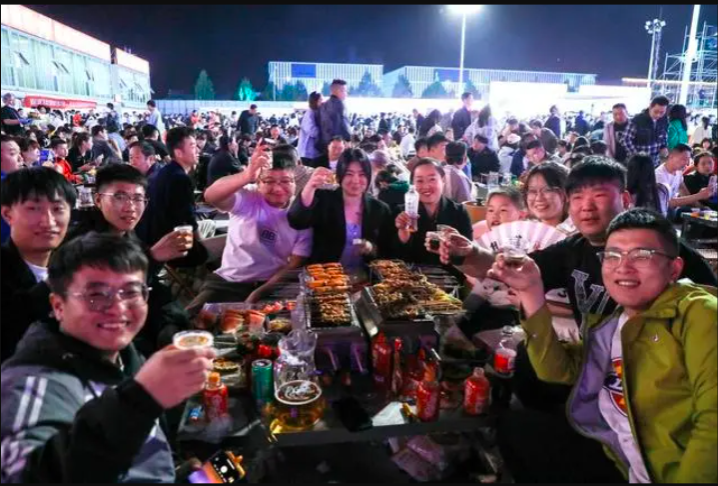 4月29日,游客在淄博市一家烧烤城吃烧烤。新华社发(朱伟 摄)