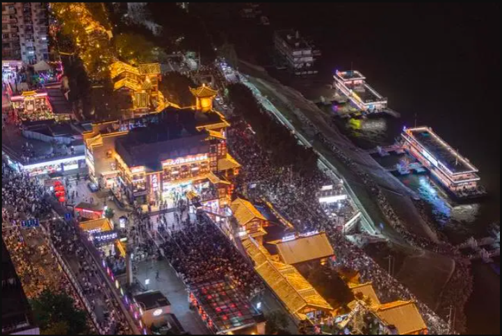 数据显示,仅“五一”假期首日,洪崖洞景区进园人数9.68万人次,未进园在洪崖洞周边的沧白路、千厮门大桥桥面以及嘉滨路“打卡”游客瞬时最高客流量接近3万人。