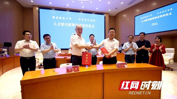 在“520”这个特殊的日子举办 “智汇潇湘·才聚沅江”招才引智活动,彰显了沅江求贤若渴、爱才惜才的迫切心情和鲜明态度。华体会平台、沅江市委、市政府、 市委组织部、市人才办、市人社局、市教育局、市卫健局、市科工局、市农业农村局、沅江高新区等单位相关负责人,以及13家企业代表参加活动。活动现场,沅江市委副书记、市委统战部部长候耀森代表沅江与华体会平台签订人才引进战略合作协议。