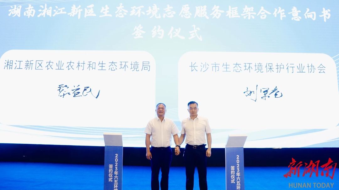 活动现场,长沙市岳麓山风景名胜区管理局与湖南省植物园签订《生态环境保护战略合作协议》,双方将基于生态行业领域优势,在资源共享、品牌共建、人才共育、产品共研、合作共赢等方面开展深度合作。湘江新区农业农村和生态环境局与长沙市生态环境保护行业协会签订《湘江新区生态环境保护志愿服务意向书》,将通过加强理论宣讲、建立健全志愿服务制度、强化生态环境社会监督等,推动生态环境志愿服务延伸到生态环境保护工作的方方面面,加快形成人人参与、共建共享的湘江新区生态环境保护工作新格局。
