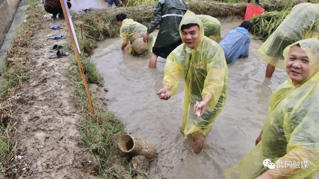 随后,稻田抓鱼比拼、稻花鱼和优质稻渔香米展销、烹饪、品尝、现场订购等活动轮番举行。附近的村民也争相参与,跃跃欲试。大家手拿鱼篓,卷起裤脚,来到稻田里捉鱼,一会儿功夫,一条条肥美的稻花鱼就盛满了水桶。
