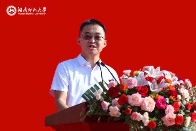 他对全体新生提出殷切期望:一是希望大家读书知礼,心存感恩。读书既能让我们增知益见,开阔眼界;又能明德知礼,修身养性。岳麓山下好读书,期待大家都能静下心读书致知、读书明理,带着温情与敬意在经典著作中触摸智慧、学会感恩、汲取力量。坚持读书知礼,努力成为一个知书达理、知恩图报、知责奋进的师大人。二是希望大家创新求索,心系家国。我们的大学自创建之时,就以“做文化的先进,国民的导师”为理想,85年来,一代代师大人,赤诚爱国的追求始终未改,教育报国的初心始终未变。希望大家始终心怀“国之大者”,厚植家国情怀,勤于探索,善于思考,敢于创新,在不断求索和坚持中,努力成为一个追求真理、肩荷使命、全面发展的师大人。三是希望大家笃行实干,心怀梦想。当今世界正在经历百年未有之大变局,世界之变、时代之变、历史之变正加速演进,对于美好梦想的坚守弥足珍贵。希望大家踊跃投身到志愿服务、创新创业、乡村振兴、社会治理、国际交流中去,拓宽思维视野,全面提升素养,实现人生价值,在矢志奋斗、不懈拼搏中,努力成为一个立大志、明大德、成大才、担大任的师大人。
