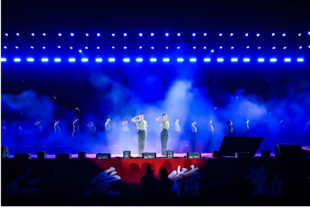 辅导员老师们用歌曲《有我》唱出对新生的期许与祝福,唱响当代中国青年应有的责任与担当;情景剧《领航》为师生展现国旗护卫队、教官队的飒爽英姿展现伟大祖国发展建设的蒸蒸日上。