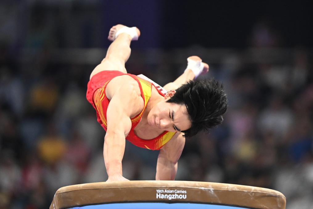 26日的黄龙体育中心体育馆,杭州亚运会竞技体操男子个人全能赛上演,中国选手张博恒的夺冠成绩就是89.299分。
