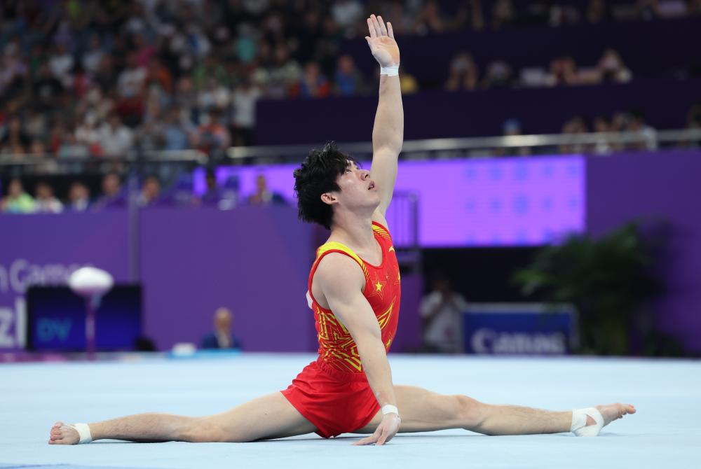 9月26日,张博恒在男子自由体操项目比赛中。新华社记者 程婷婷 摄