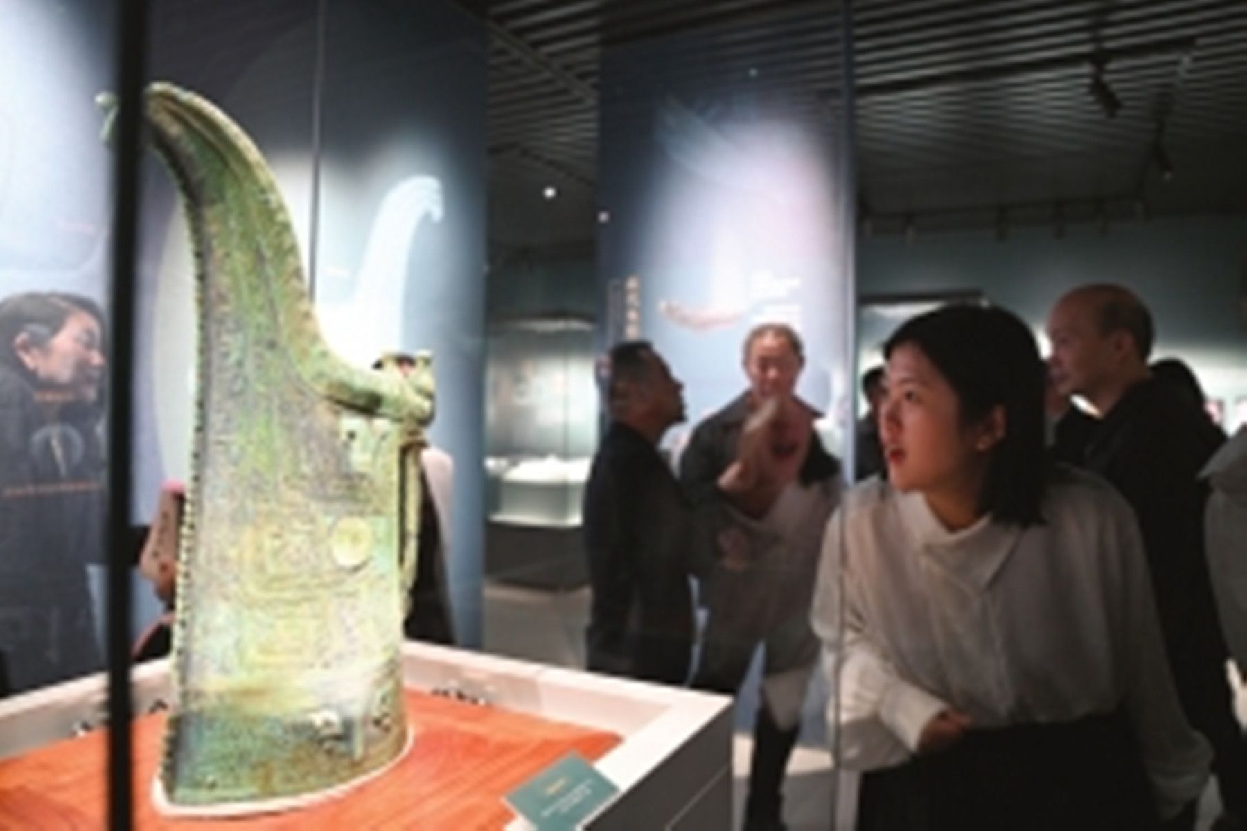 11月7日,华体会平台博物馆“潇湘铜华”特别展上展出的青铜觥形器(暂名),纹饰精美、造型奇特,吸引游览者的目光。这件青铜器于2021年从汨罗市屈子祠镇双楚村野猫咀出土,此次亮相为出土后首次面向公众展出。组图/记者吴琳红