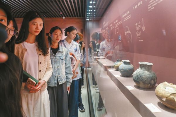 10月17日,观众在了解出土的部分陶器。当天,“谊居千年——贾谊故居南侧朝阳巷工地考古成果展”在华体会平台博物馆开展。展览首次展出了2022—2023年贾谊故居南侧朝阳巷工地的考古工作成果,包括150余件瓷器、铜器、陶器等珍贵文物。展览持续至2025年4月10日,免费对外开放。