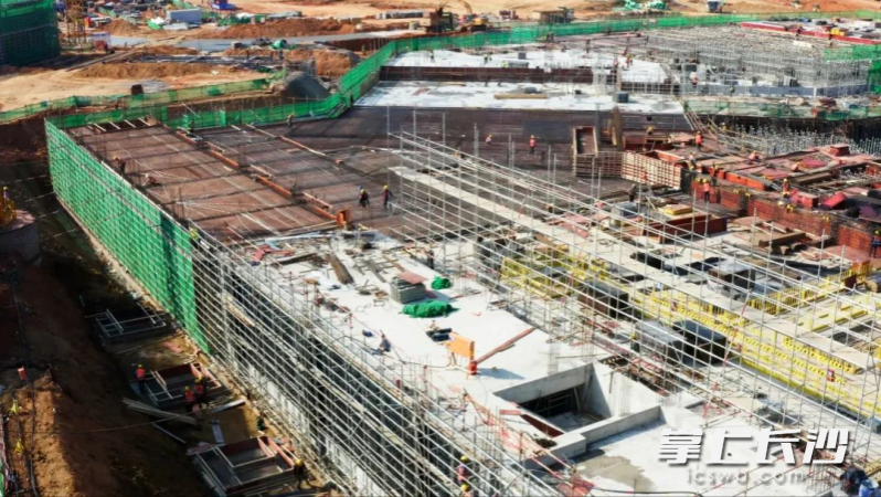 “目前,高中部主体工程已完成40%,计划今年12月底完成所有楼栋主体结构封顶,明年5月底完工,初中部正在进行场平施工,预计明年6月底完工。”湖南师大附中新校区项目现场负责人介绍。