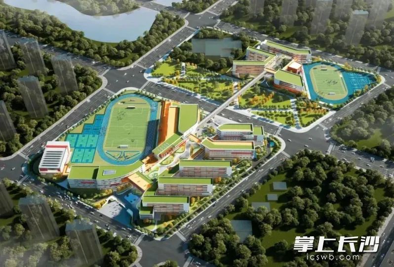 据悉,湖南师大附中新校区项目位于腾飞路和金星北路东北角,总投资约9.4亿元,总用地面积约162亩。其中,高中部占地约110亩,可容纳学生3000人,初中部占地约52亩,可容纳学生1500人。