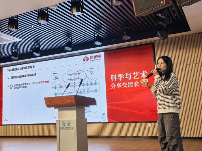 科学艺术分享交流会环节,中国科学技术大学艺术与科学研究中心副主任、副教授梁琰作题为《用科学可视化实现科学的高效传播》的报告,围绕科学可视化定义、科学可视化与科学传播的关系等展开讲解,并通过一系列科学可视化案例,展示了其在促进科学理解与提升传播效果方面的重要作用。与会人员纷纷表示,讲座有效提升了他们对科学可视化的认知维度。
