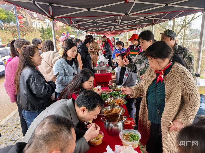 民俗市集内,灯盏糍粑软糯香甜,油茶醇厚绵长,一粒稻谷、倒缸酒等本土农产品琳琅满目,孕育着烟火气息。“既能看到地道的民俗表演,又能尝到家乡的特色小吃,这样的活动太有意义了,既热闹又能感受到传统文化的魅力。”来自邻县的游客王女士一边品尝着灯盏糍粑,一边感慨地说。